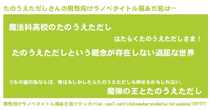 | 意味不明あだ名 | 『永久保存たのうえただし』 |