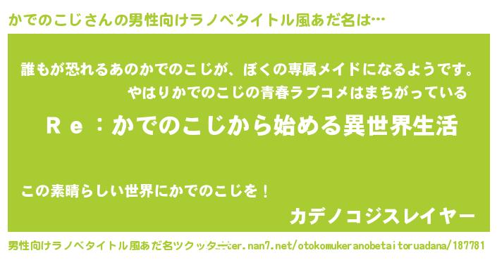 | 女子向けラノベタイトル風あだ名 | 『かでのこじストレイドッグス』 |