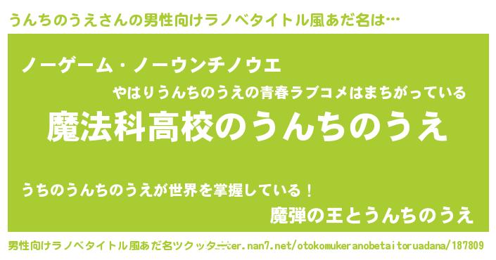 | 女子向けラノベタイトル風あだ名 | 『うんちのうえアンティーク』 |