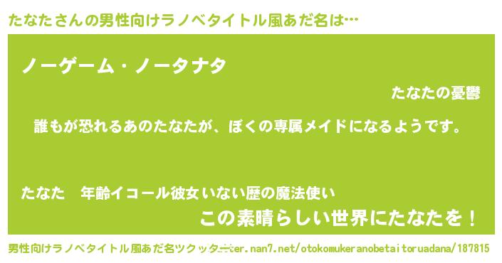 | ヒーロー風カッコイイあだ名 | 『ネオタナタ』『慈愛の使者たなた』 |
