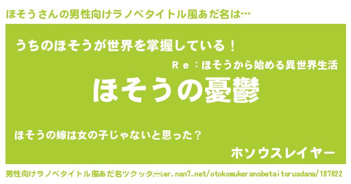 ほそうさんの男性向けラノベタイトル風あだ名をツクッター!