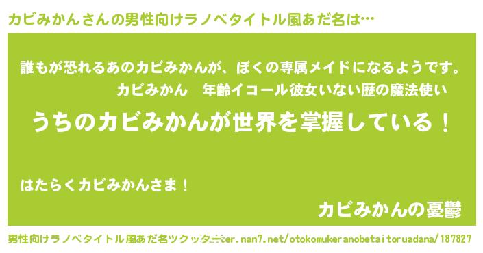 | 女子向けラノベタイトル風あだ名 | 『男装カビみかんの憂鬱な任務』 |