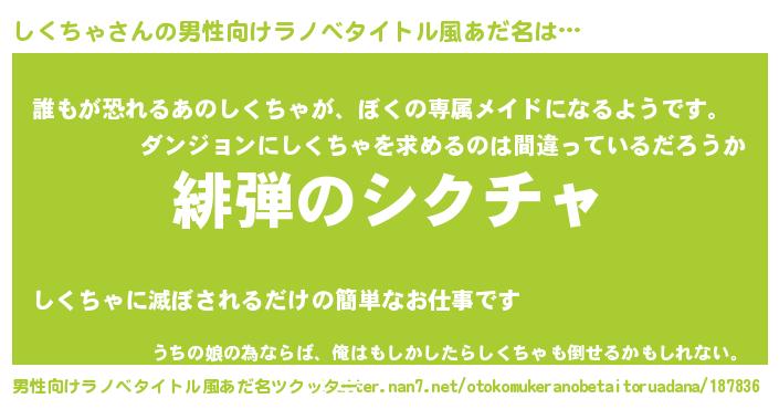 | 胡散臭い通販商品みたいなあだ名 | 『絶対に幸福をもたらす水素水…その名も「しくちゃ」』 |