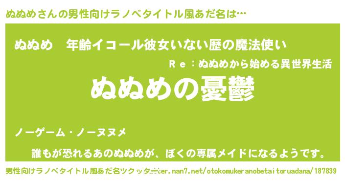 | ヘコむあだ名 | 『ぬぬもー』『ぬぬめ(小並感)』 |
