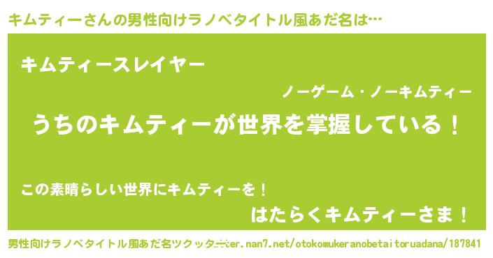 | 女子向けラノベタイトル風あだ名 | 『男装キムティーの憂鬱な任務』 |