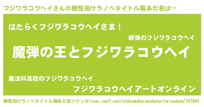 | 意味不明あだ名 | 『住所不定無職フジワラコウヘイ(39歳)』 |