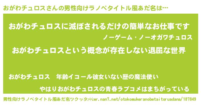 おがわチュロスさんの男性向けラノベタイトル風あだ名をツクッター!