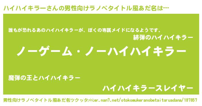 | ヒーロー風カッコイイあだ名 | 『慈愛の使者ハイハイキラー』 |
