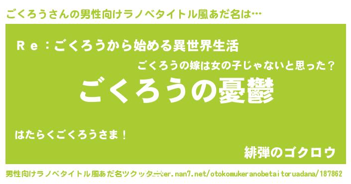 | ヒーロー風カッコイイあだ名 | 『スーパーゴクロウ』『魔戒騎士ゴク』 |