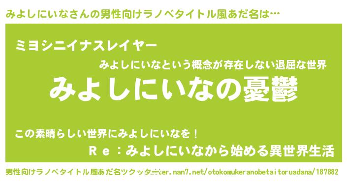 | 肩書あだ名 | 『みよしにいな御曹司』 |