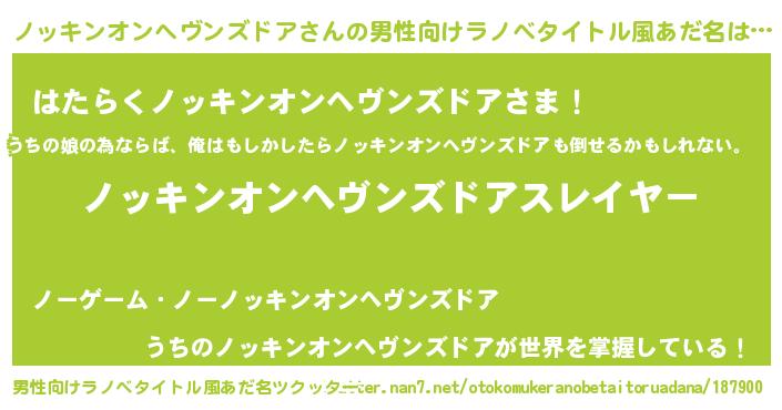 | 料理風あだ名 | 『ノッキンオンヘヴンズドアごはん』 |