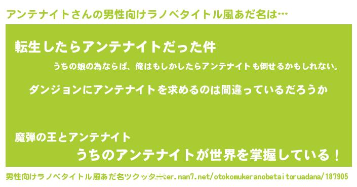 アンテナイトさんの男性向けラノベタイトル風あだ名をツクッター!