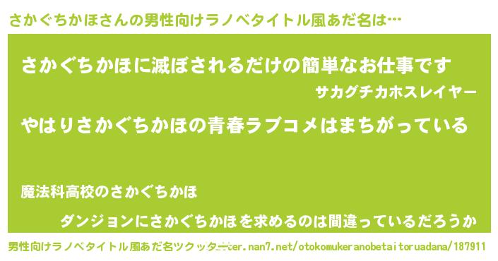 | 女子向けラノベタイトル風あだ名 | 『さかぐちかほ伯爵の花嫁』 |