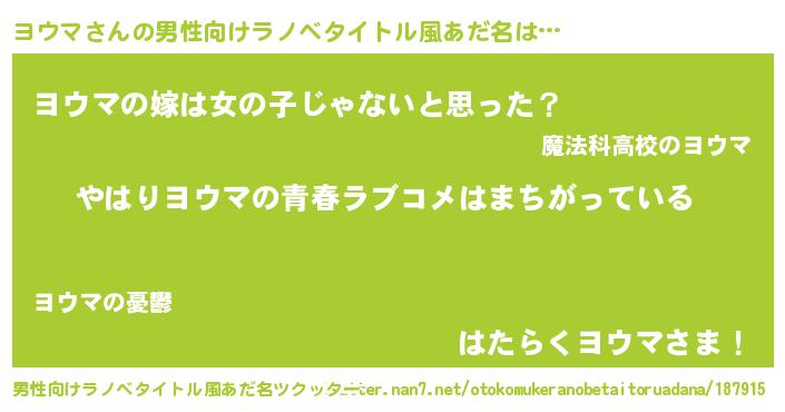 | 女子向けラノベタイトル風あだ名 | 『ヨウマ伯爵の花嫁』 |