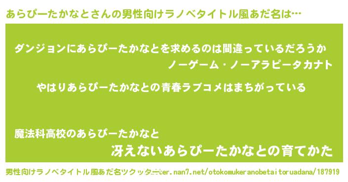 | 意味不明あだ名 | 『あらぴーたかなとフォーエバー』 |