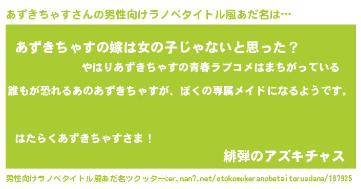 | 女子向けラノベタイトル風あだ名 | 『異世界でカフェあずきちゃすを開店しました。』 |