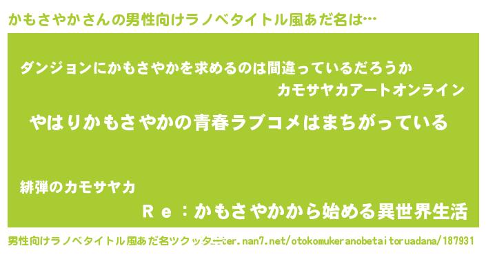 | ヒーロー風カッコイイあだ名 | 『ウルトラかもさやかマン』 |