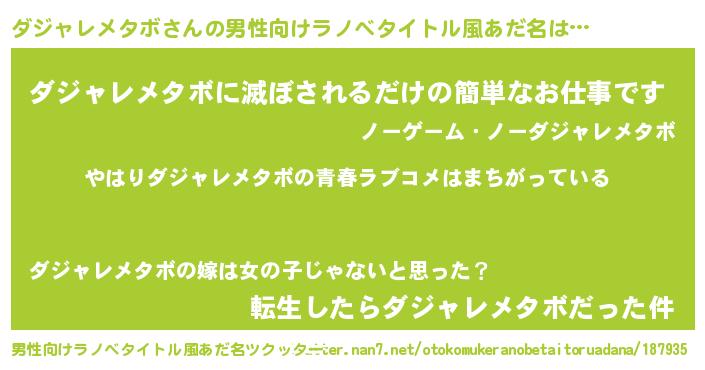 | 女子向けラノベタイトル風あだ名 | 『ダジャレメタボの雑貨屋さん』 |
