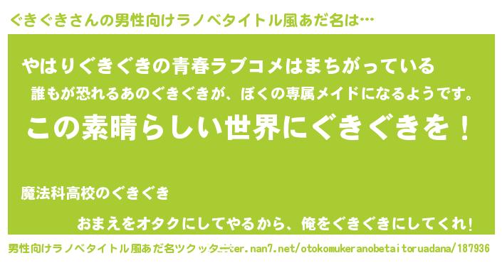 | 意味不明あだ名 | 『住所不定無職ぐきぐき(81歳)』 |
