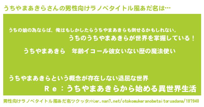 | 女子向けラノベタイトル風あだ名 | 『うちやまあきらの玉の輿計画!』 |