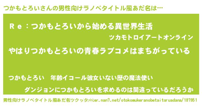 | ファンタジー風あだ名 | 『エターナルツカモトロイー』 |