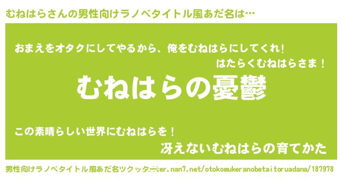 むねはらさんの男性向けラノベタイトル風あだ名をツクッター!