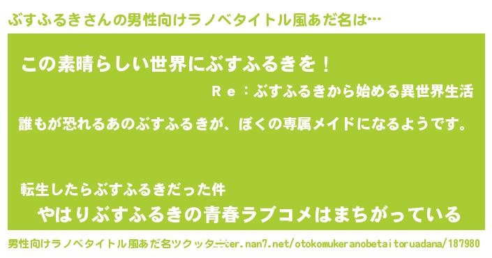 | 意味不明あだ名 | 『永久保存ぶすふるき』『自称ぶすふるき』 |