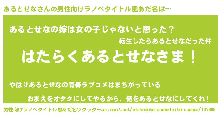 | 意味不明あだ名 | 『とにかく怪しいあるとせな』 |