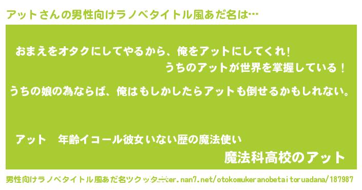| 女子向けラノベタイトル風あだ名 | 『アットの婚約者』 |