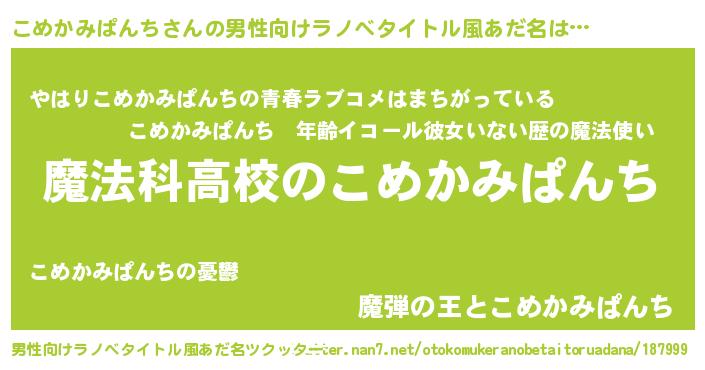 | 女子向けラノベタイトル風あだ名 | 『こめかみぱんちなんてお断りですっ。』 |