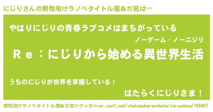 ヒーロー風カッコイイあだ名 | 『究極戦士ニジリ』『ウルトラにじりマン』 |