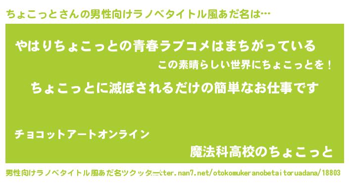 | 胡散臭い通販商品みたいなあだ名 | 『世界が平和になる高級そうな絵画…その名も「ちょこっと」』 |