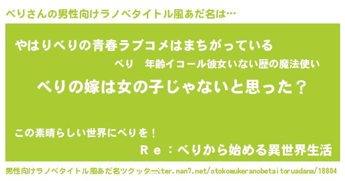 | 意味不明あだ名 | 『とにかく怪しいべり』『自称べり』 |