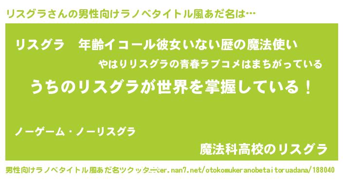 | 女子向けラノベタイトル風あだ名 | 『男装リスグラの憂鬱な任務』 |
