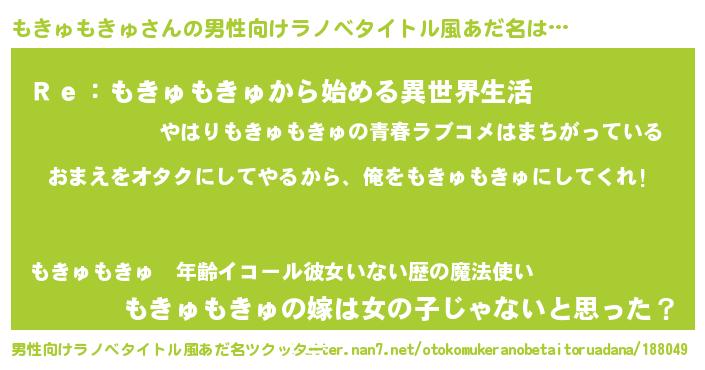 | 胡散臭い通販商品みたいなあだ名 | 『お金では代えられない隕石のかけら…その名も「もきゅもきゅ」』 |