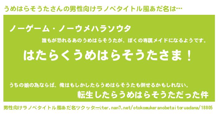 | 意味不明あだ名 | 『眠気覚ましガムうめはらそうた味』 |