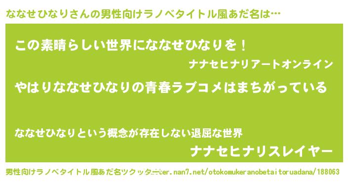 | 意味不明あだ名 | 『ななせひなりフォーエバー』 |