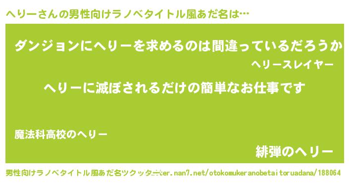 | ヒーロー風カッコイイあだ名 | 『炎刃騎士ヘリ』『最強戦士ヘリー』 |