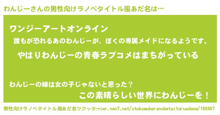 | 女子向けラノベタイトル風あだ名 | 『わんじー伯爵の花嫁』 |