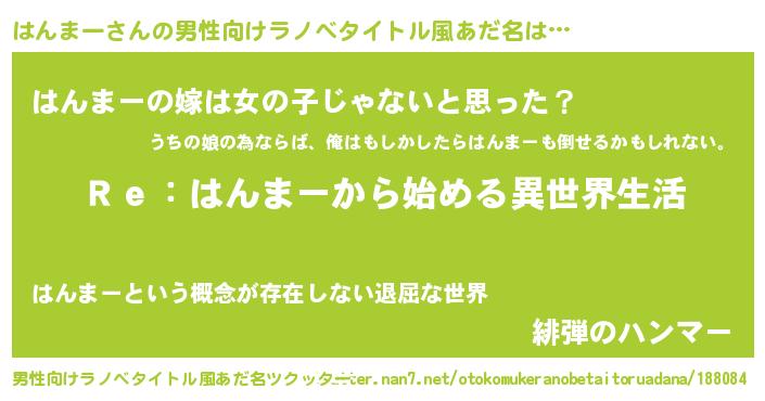 | 肩書あだ名 | 『はんまー総統』『はんまー班長』 |