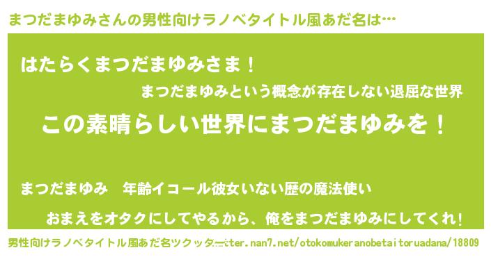 | 女子向けラノベタイトル風あだ名 | 『悪役まつだまゆみに転生したようですが、知った事ではありません』 |