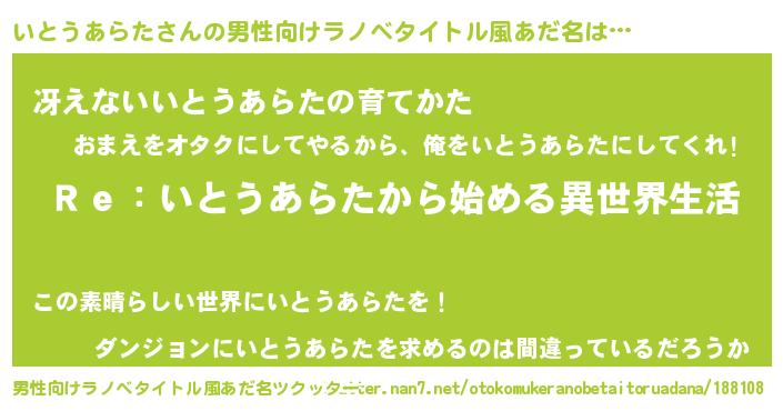| 女子向けラノベタイトル風あだ名 | 『闇のいとうあらた』 |