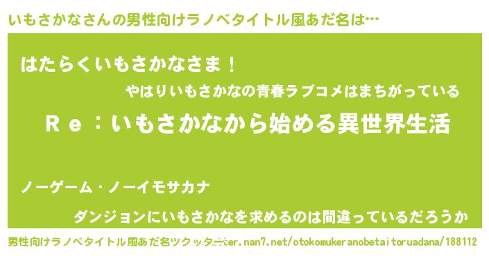 | ヒーロー風カッコイイあだ名 | 『サイバー戦士イモサカナ』 |