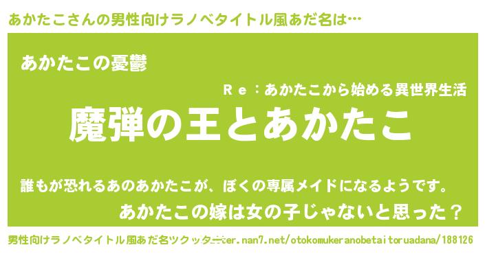 | 女子向けラノベタイトル風あだ名 | 『あかたこが死なない童話 林檎のあかたこの診療簿』 |