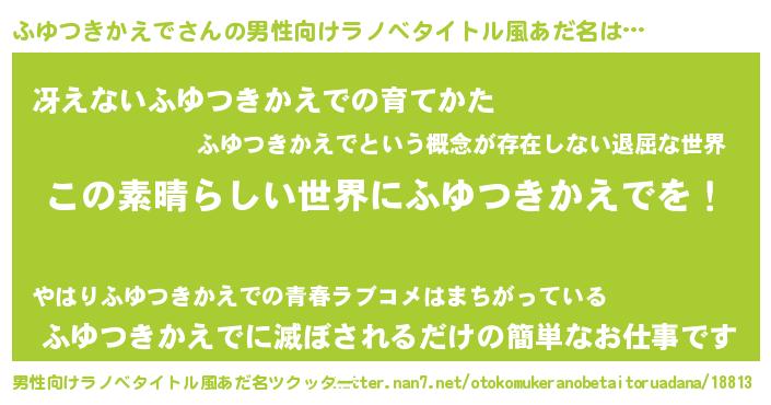 ふゆつきかえでさんの男性向けラノベタイトル風あだ名をツクッター!