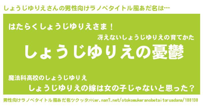 | 女子向けラノベタイトル風あだ名 | 『(仮)しょうじゆりえのやんごとなき事情』 |