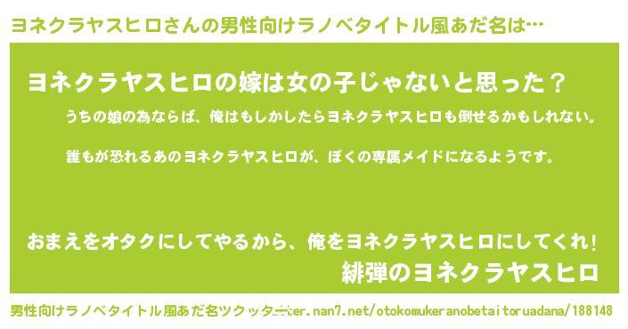 | 胡散臭い通販商品みたいなあだ名 | 『前代未聞の健康食品…その名も「ヨネクラヤスヒロ」』 |
