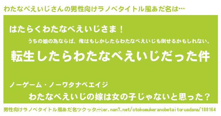 女子向けラノベタイトル風あだ名 | 『わたなべえいじの玉の輿計画!』 |