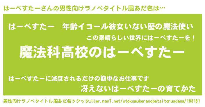 | 女子向けラノベタイトル風あだ名 | 『はーべすたーなんてお断りですっ。』 |