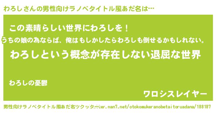 | 胡散臭い通販商品みたいなあだ名 | 『来世でも幸せになれる水素水…その名も「わろし」』 |